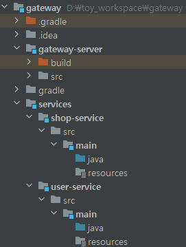 샘플로 구현할 프로젝트의 구성은 1개의 Gateway와 2개의 MSA로 구성하고, Gateway에서 2개의 서비스를 라우팅할 것이다.