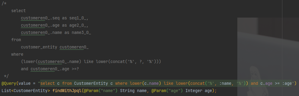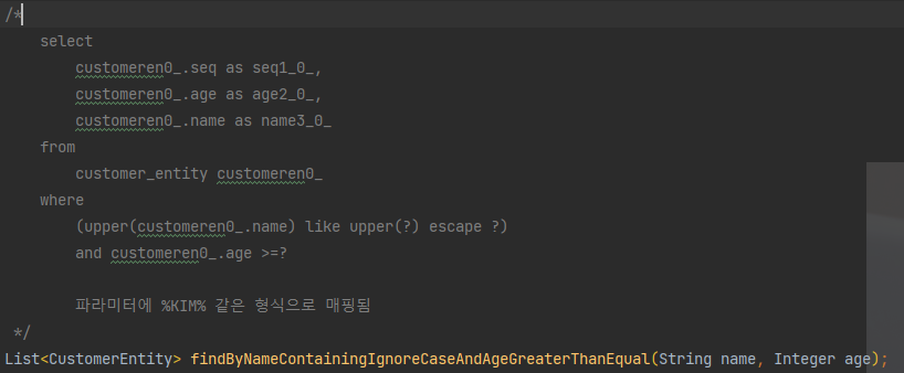 JPA에서의 기존 사례 - 고객의 이름과 나이로 조회