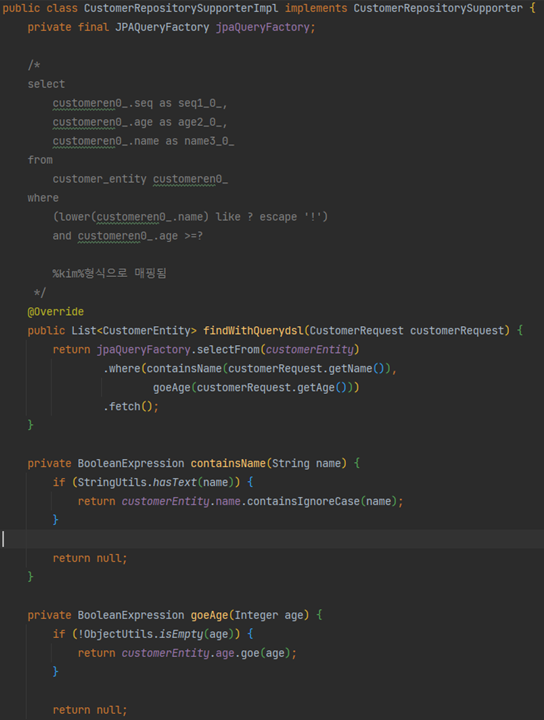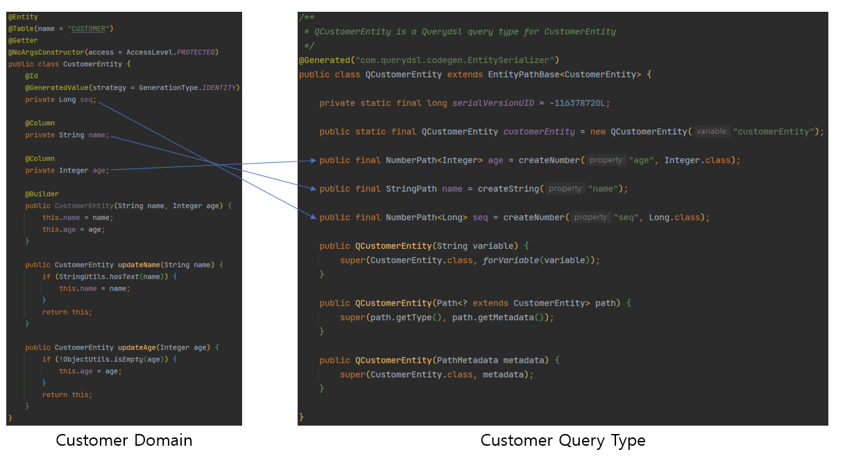 - Querydsl에 의해 자동으로 QCustomer라는 쿼리타입 생성