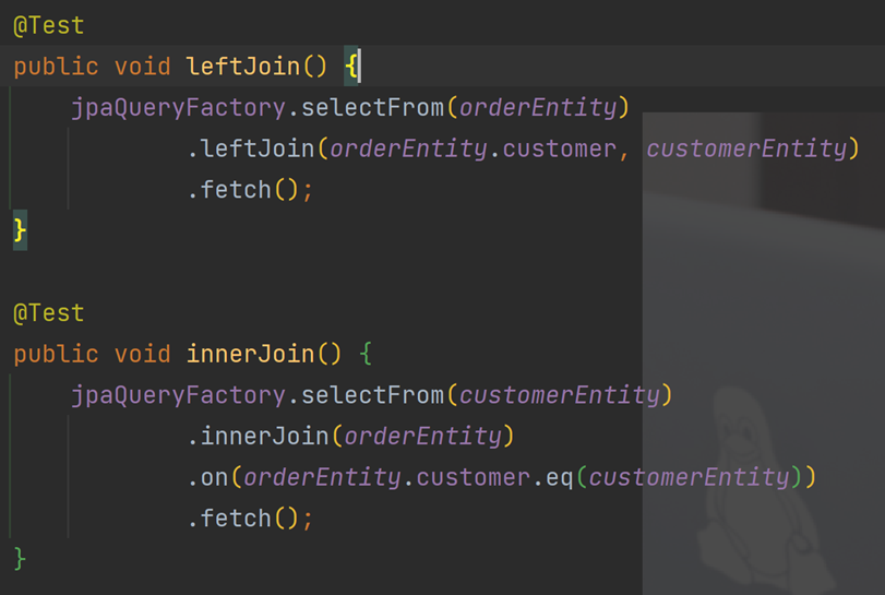 - Join(조인 대상, 쿼리 타입(별칭)) 패턴, Querydsl은 JPQL의 이너 조인, 조인, 레프트 조인, 풀조인을 지원한다 조인 역시 타입에 안전